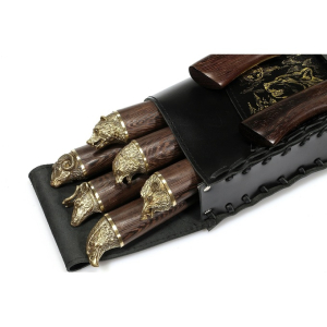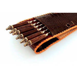 Шампурница Охотник - шампуры с деревянной ручкой в кожаном чехле