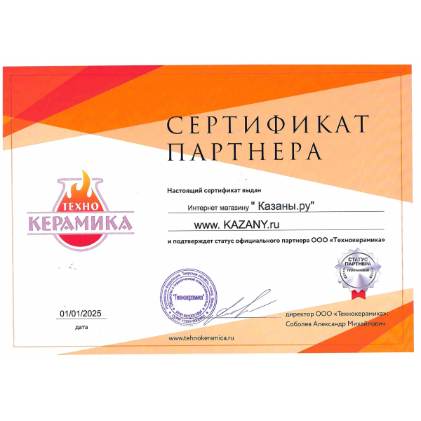 Высота тандыра с крышкой - 93 см, без крышки - 63 см. Диаметр жаровни в широкой части - 55 см, горловины - 32 см. Толщина стенок - от 5 см. Большое отверстие горловины позволяет использовать в тандыре емкие аксессуары: большие этажерки, камни с увеличенным диаметром, чугунки.